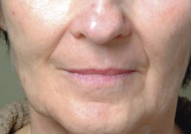 Laserowe usuwanie zmarszczek palacza, zmarszczek wokół ust: Contour TRL. Zdjęcie wykonane 4 miesiące po jednym zabiegu.